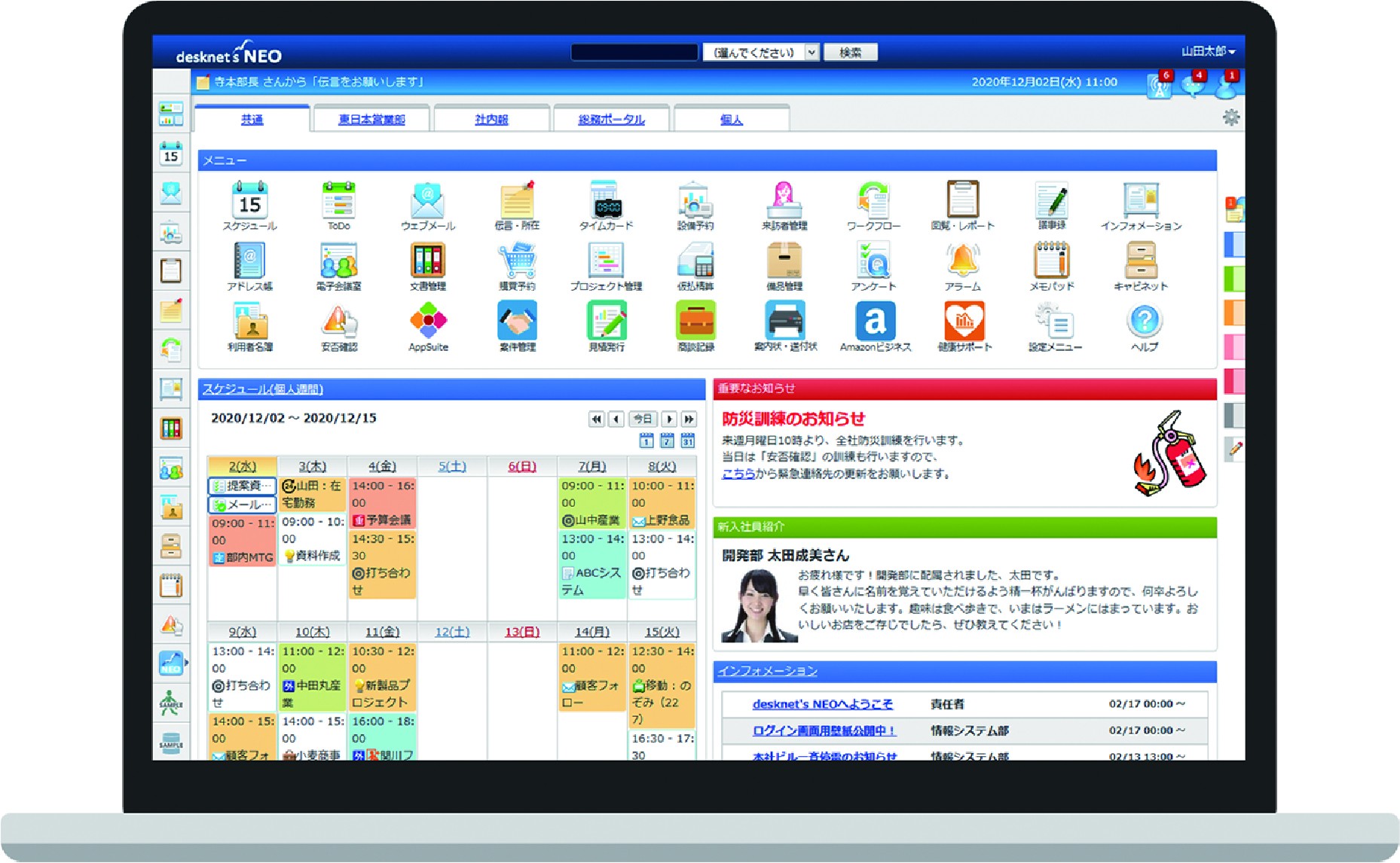 このdesknet's NEOは、スケジュール管理やワークフロー、共有設備・備品の予約など、多くの自治体に必要とされる機能を直感的な操作で使いこなせるように設計されている。全国450自治体以上という導入実績が、その利便性の高さをあらわしているといえるだろう。