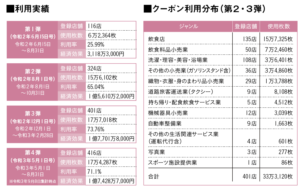 「通常、市の事業は市民からの理解を広く得ながら着実に進める必要がありますが、今回はそんな猶予はありませんでした。市議会の賛同を得つつ、半ば強行したのが実情です。市民からは『告知が十分じゃないからクーポンに気づかず捨ててしまった』というお叱りの言葉、『景気刺激策として分かりやすい!』というお褒めの言葉、それぞれいただきましたが、反省点は次回掲載号にしっかり活かし、少しずつブラッシュアップしてきました」と振り返る。