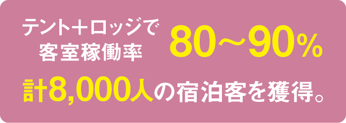 オープン後間もなくコロナ禍に入ったが、グランピングならではのオープンエアな滞在環境が「3密を回避しつつ余暇を楽しみたい」という客層に好評で、順調な営業を継続している。「グランピングの事例を機に、今後も、市や県内外の様々な事業者と協力し合いながら、地域内で経済を循環させられる環境をつくっていきたいと考えています」と展望を語った。