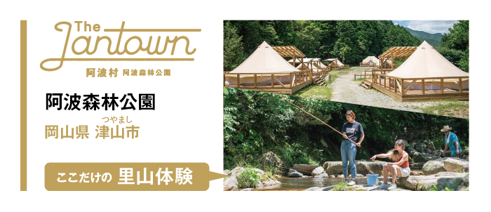 渓流釣りができる川やバンガローサイト、テントサイトを擁する「阿波森林公園」内に、グランピングテント10張りを新設。既存バンガロー5棟にもグランピングの内装と夕食、アクティビティを付加し、地域コンテンツの再編集を図りました。里山の原風景が残り、観光資源は豊富なものの、稼働率・売上が低迷していた森林公園が、グランピング場開設によって付加価値が高まり、地域が元気になるのを感じています。