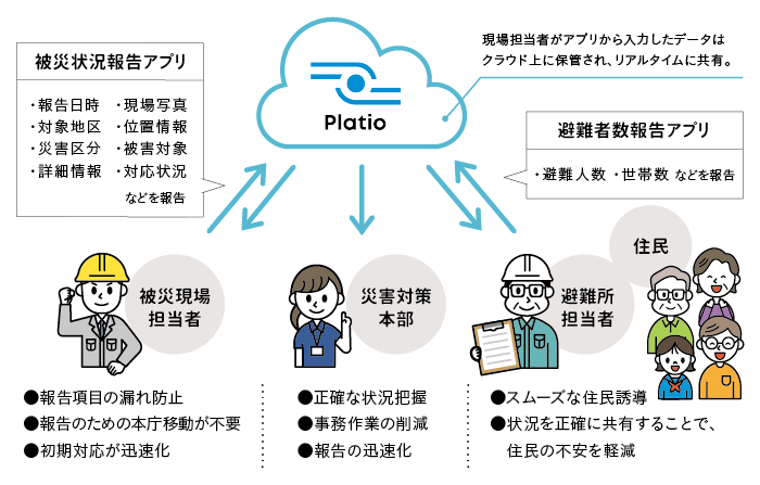 作成面に加え、機能面においても満足していると松本さんは話す。「被災現場で得た情報は、その場でスマホやタブレットに入力。データはすぐにクラウド上に保存され、リアルタイムで災害本部などと共有されます」。また、現場が通信圏外だった場合でも、通信可能エリアに移動するまでデータを保持、自動で送信されるという。「住民の危機を可能な限り回避するという目的のもと、許容範囲内の予算で確実に目的達成できるアプリが完成したと考えています。現場写真や座標データも収集できるため、県への報告も迅速化しました」と、導入効果を実感している。