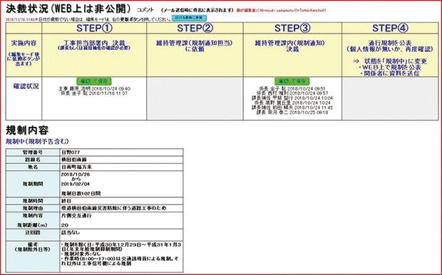 ほかにも、周知業務を紙ベースで管理しているため、通行規制内容をすぐに把握できず問い合わせに迅速に対応できないといった問題点も生まれていました。