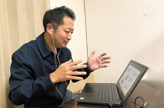 PowerPointの撮影機能を使用し、通常のプレゼンテーションをする感覚で操作しながら動画撮影。蛍光ペン機能でポイントを強調するとメリハリが。