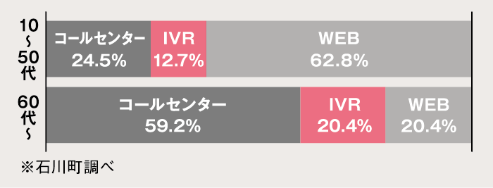 高齢者が多い自治体の場合、コールセンターに予約が集中する可能性が高く、回線パンクのおそれがある。そんなとき、IVRの併用があれば、分散が可能になる。実際に石川町のワクチン接種事業では、高齢者の約20%がIVR予約だった。