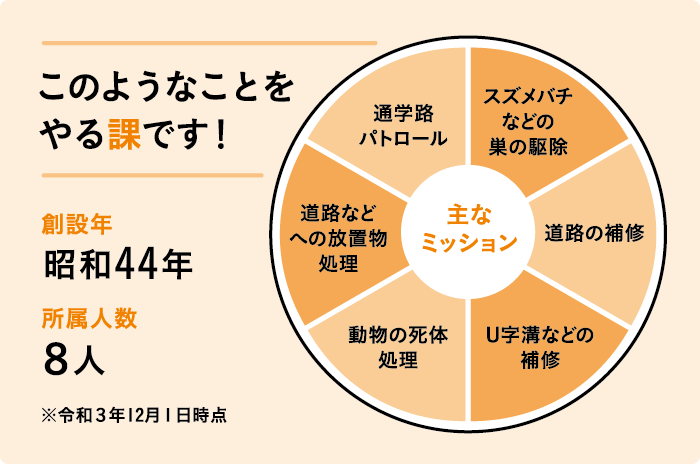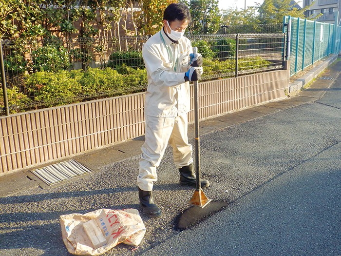 危険回避と不快処理が主な業務。写真は、道路補修の様子。