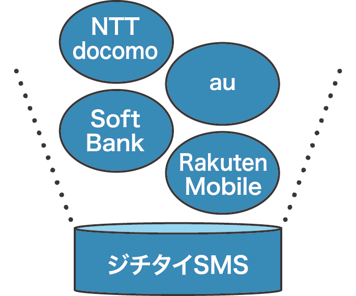 ジチタイSMSなら、国内のキャリア全てに送信可能。スマホか携帯電話を持っている相手であれば、そのほぼ全員にいつでも・どこでもリーチできる。
