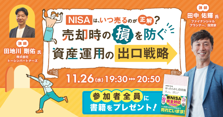 なんとなく始めたNISAが、なんとなく終わってしまう前に。資産運用で「後悔しない人」になるために、“売るタイミングに迷わず、自分に合った出口を選べる”知識と判断力をこのセミナーで身につけましょう。