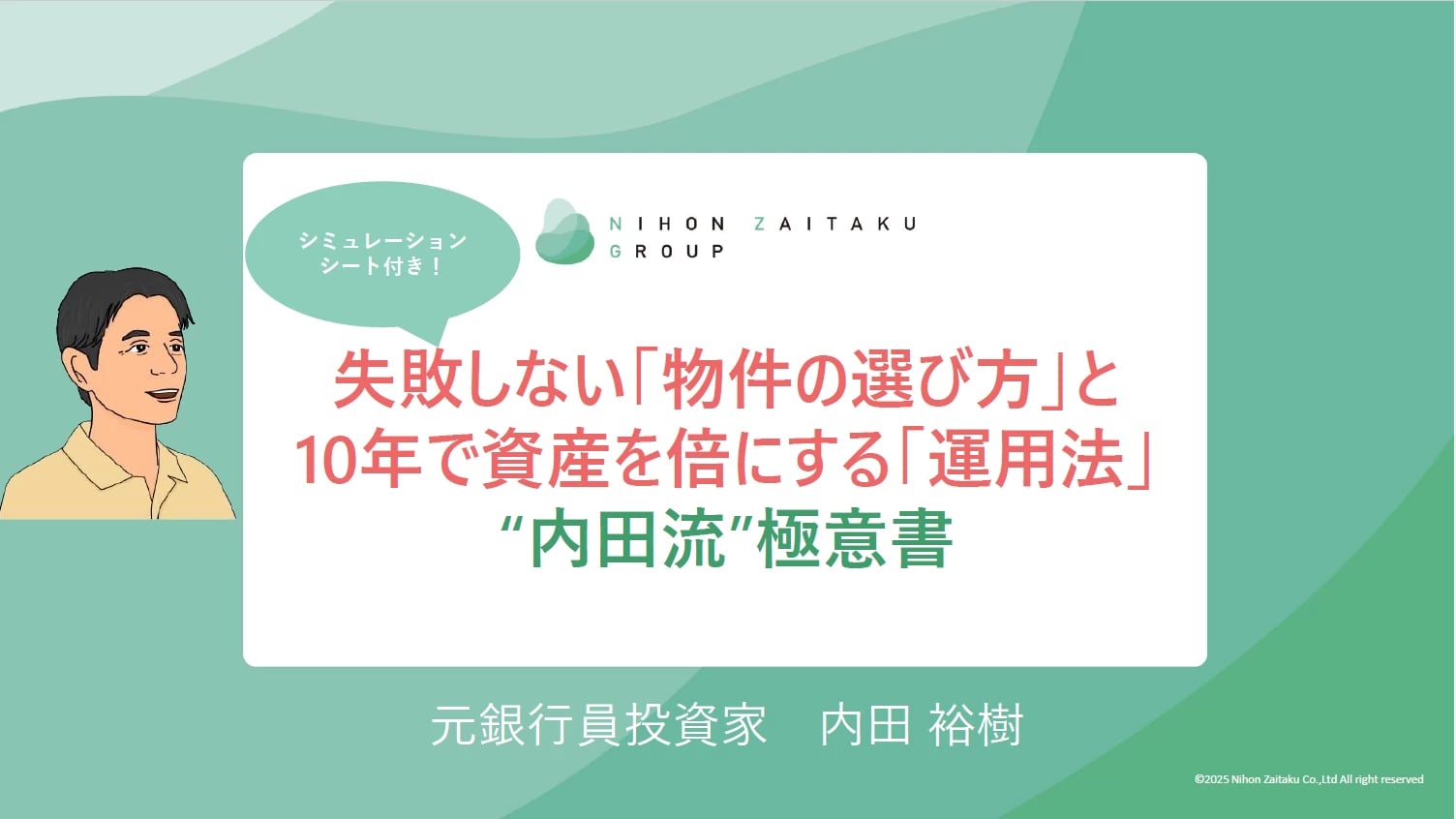 【さらに!】参加+参加後アンケート回答で、第1部講師 内田氏による『失敗しない「物件の選び方」と10年で資産を倍にする「運用法」“内田流”極意書』をプレゼント!