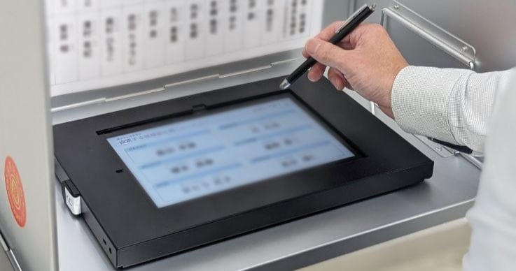 かつて普及が進まなかった電子投票に新たなアプローチで挑戦する。 省人化・省スペース化に加えてミスのない投開票を後押しする。 手軽に利用できるシステムで一人でも多くの政治参加を促す。 CHECK! 投開票に必要な物品をパッケージで提供 京セラ ビジネスインテグレーション事業部 古野 秀一(ふるの しゅういち)さん 様々な分野でデジタル化が進む中、選挙においては依然として紙によるアナログ作業が一般的だ