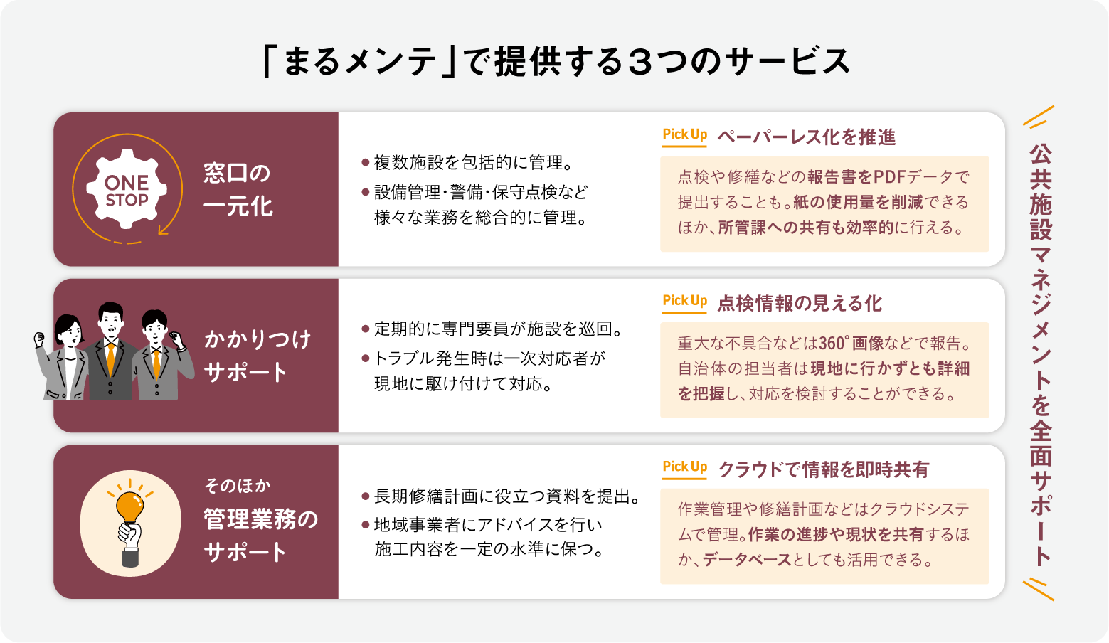 維持・管理のプロにお任せ。包括管理で、公共施設にも“かかりつけ医”を。